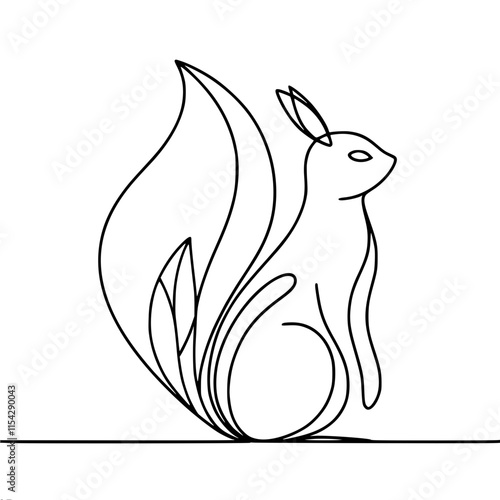 Naklejka premium Elegant line drawing of a minimalist squirrel with leaf detail