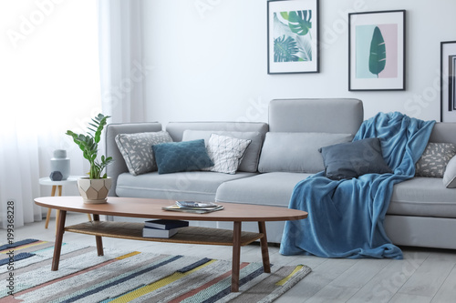 Fototapeta premium Elegant living room interior with comfortable sofa