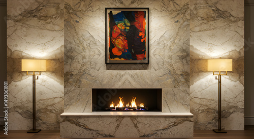 Naklejka premium Elegant Living Room Interior With Modern Fireplace And Artistic Accents
