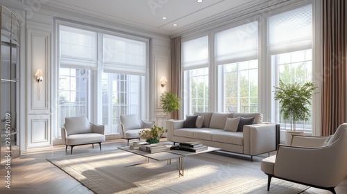© Murda, Fototapeta premium Elegant living room, sunlight, modern furniture, tranquil atmosphere.