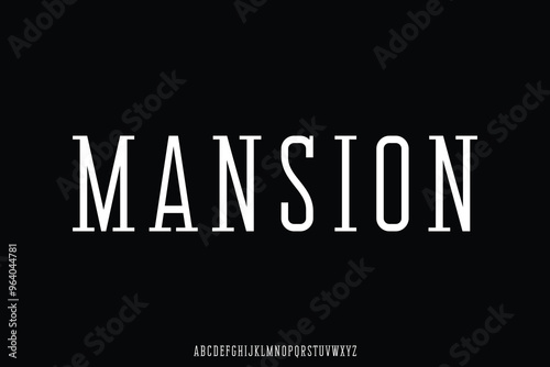 © Asenbayu, Obraz premium Elegant luxury condensed serif alphabet display font vector. Mansion typeface illustration