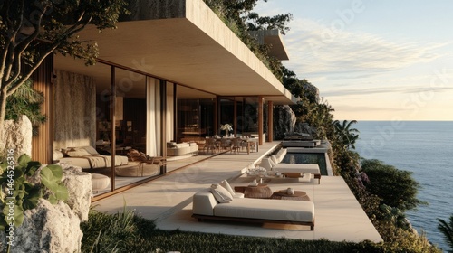 Fototapeta premium Elegant luxury house located on a cliff, with beautiful sea views. background...