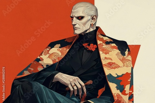 © DanhIA, Fototapeta premium Elegant Man in Ornate Kimono-Style Robe, Artistic Portrait
