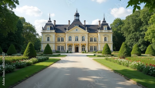 © SwathiFX, Fototapeta premium Elegant mansion with manicured gardens perfect for a fairytale wedding