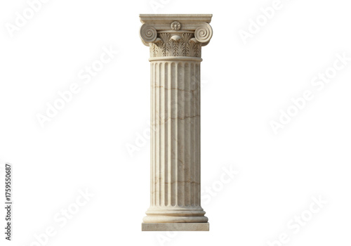 © Niamh, Obraz premium Elegant marble column isolated PNG on transparent background, ancient architectural element for design and historical projects