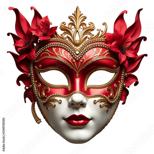 © Muzamil, Naklejka premium Elegant Mardi Gras Masquerade Party Invitation with Gold and Purple Mask Clipart PNG Isolated on Transparent Background