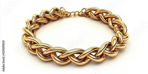 © ShStock, Obraz premium Elegant massive golden braided chain bracelet centered on a white background with smooth curves and ample white space for text or design elements.
