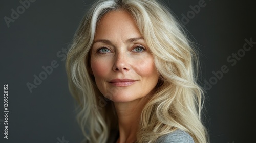 © GRACE, Fototapeta premium Elegant mature caucasian female with long blond hair and serene smile