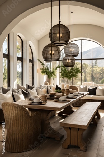 © duyina1990, Fototapeta premium Elegant Mediterranean Dining Room With Panoramic Mountain Views