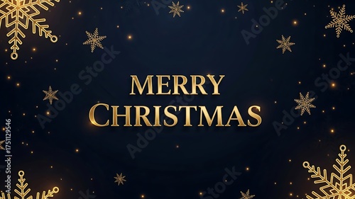 © Panuluh, Naklejka premium Elegant Merry Christmas Greeting Card Design with Gold Snowflakes and Stars on Dark Blue Background, Perfect for Holiday Celebrations, Seasonal Greetings, Festive Decorations, and Winter Holiday