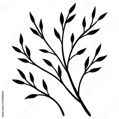 © Shamima, Naklejka premium Elegant minimal black and white botanical twig illustration background design