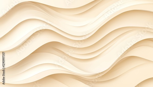 © Ilja, Obraz premium Elegant Minimalist Background, 3D Pale Yellow Abstract Flowing Waveform Delicate Light Pattern
