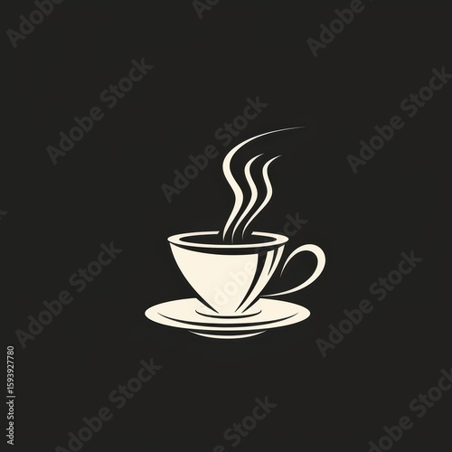© tanawatbig, Obraz premium Elegant Minimalist Coffee Cup Design with Steam on Dark Background