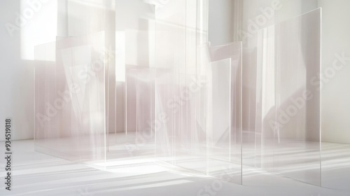 Fototapeta premium Elegant minimalist composition of transparent geometric forms, arranged delicately on a clean white canvas