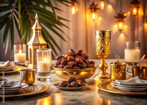 Obraz premium Elegant Minimalist Iftar Dinner Table Setting: Ramadan Luxury