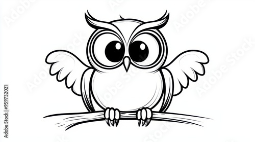 Obraz premium Elegant Minimalist Outline Drawing of Wise Owl Perched on White Background