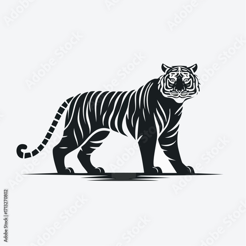 Naklejka premium Elegant minimalist vector illustration of a majestic tiger, black and white design, clean background