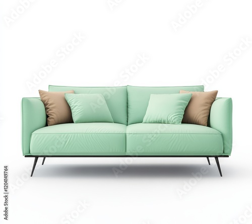 © Gophotograph, Fototapeta premium Elegant mint green sofa displayed on a clean white surface.