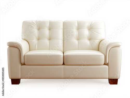 © Julllia, Fototapeta premium Elegant modern beige leather sofa with tufted backrest and wooden legs isolated on white background