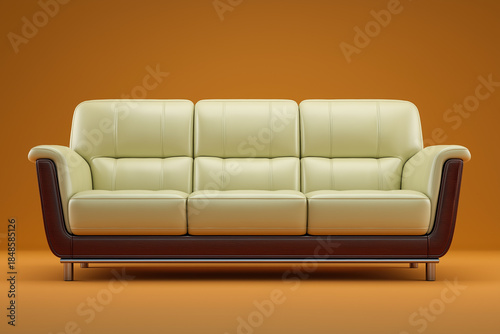 © RISHAD, Fototapeta premium Elegant modern cream sofa against warm orange background