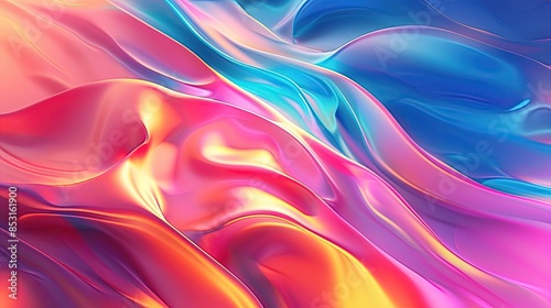 © Pic, Naklejka premium Elegant modern futuristic abstract background with 3D wave illustration design, reflection glossy colors, gradient waves, full color.