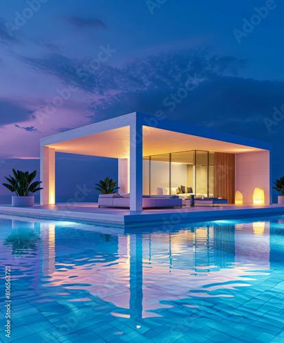 © JuanM, Fototapeta premium Elegant modern poolside villa. Luxury home with swimming pool in modern style.