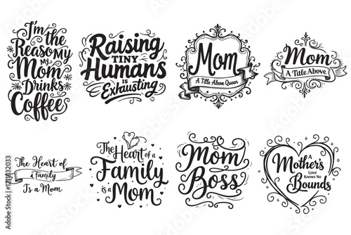 © Enamul, Fototapeta premium Elegant Mom Quotes Typography Bundle