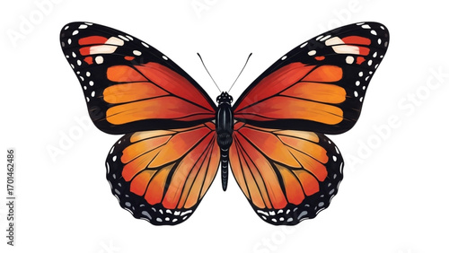 Fototapeta premium Elegant Monarch Butterfly Illustration with Symmetrical Wings on Black...