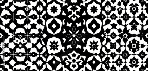 © Tanapong, Fototapeta premium Elegant monochrome geometric seamless patterns; diverse styles, repeatable textures for textile prints, design, repeating