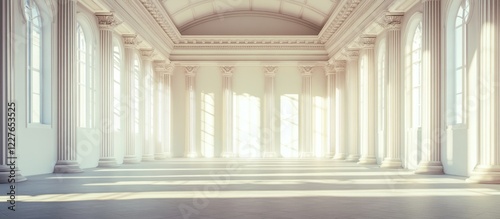 © ArtificialHorizons, Obraz premium Elegant monumental architecture interior with abundant natural light and spacious empty area for text or content placement.