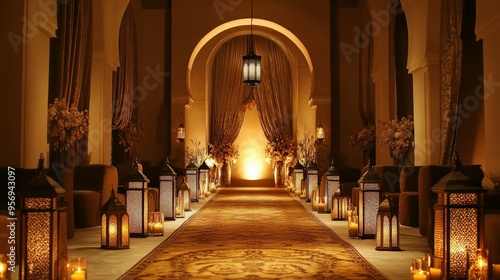 Fototapeta premium Elegant Moroccan Corridor Decorated with Lanterns and Flowers