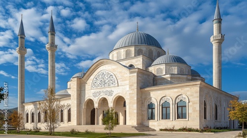 © IMAGINIAC, Obraz premium Elegant Mosque Architecture Under a Blue Sky