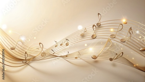 Obraz premium Elegant musical notes flow in wavy line pattern across a soft, creamy...