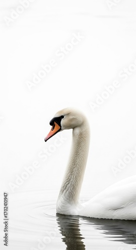 Fototapeta premium Elegant mute swan with a curved neck gracefully gliding on calm waters,...
