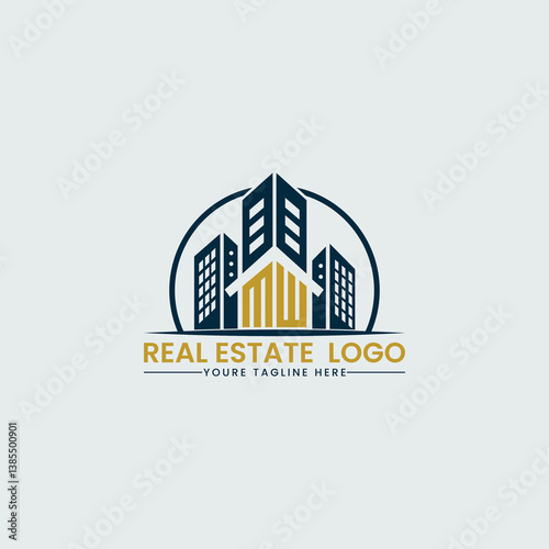 © Abdullah, Obraz premium Elegant MW Real Estate Logo with Urban Skyline