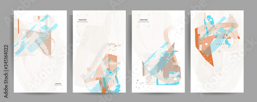© Olya Kartavaya, Fototapeta premium Elegant natural pastel muted pale calm tones card templates set. Collection of romantic invitations abstraction background line color