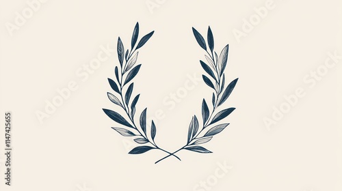 © kucret, Naklejka premium Elegant navy blue and gray olive branch wreath illustration on beige background.