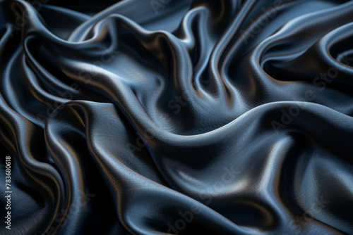 Obraz premium Elegant Navy Blue Silk Fabric Texture with Luxurious Waves and Folds