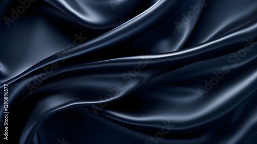 © chartchai, Obraz premium Elegant Navy Blue Silk Satin Fabric Panoramic Background with Space for Design and Branding