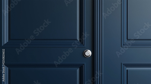 © gd-house, Fototapeta premium Elegant Navy Blue Wooden Door with Classic Paneling and Metal Knob