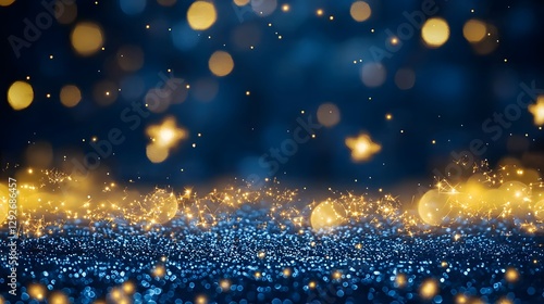 © Marketplace2 , Naklejka premium Elegant 2024 New Year Background with Shimmering Gold Foil Accents Twinkling Stars and Soft Golden Bokeh Lights on a Dark Navy Backdrop Celebrating a Bright and Prosperous Year Ahead