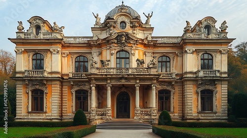 © Lingkan, Fototapeta premium Elegant old palace facade with classical sculptures high resolution image