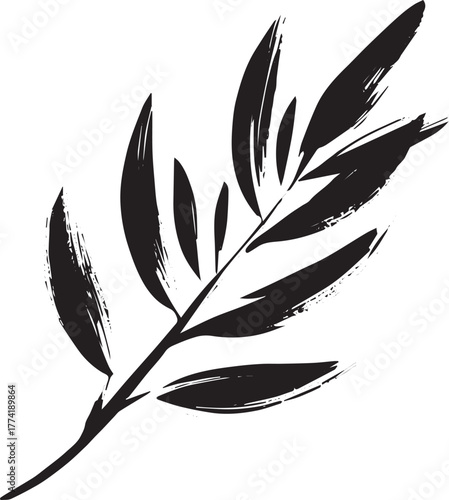 Obraz premium Elegant Olive Branch Illustration in Sumi-e Style Black and Whit