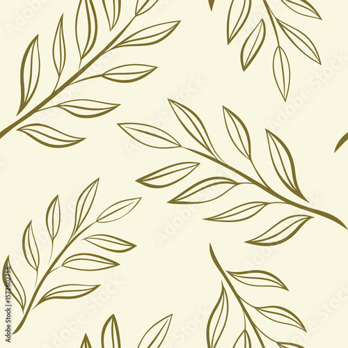 © Sadhin07, Naklejka premium Elegant Olive Branch Seamless Pattern Subtle Botanical Illustration for Textile Design