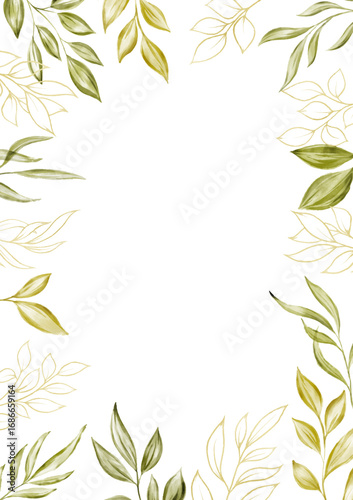 Naklejka premium Elegant Olive Green Leaf Border Frame