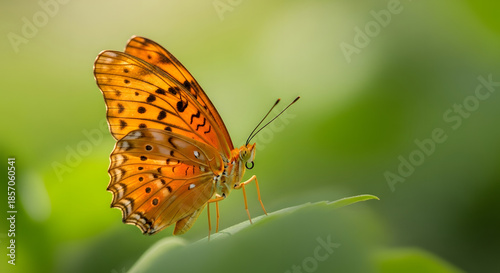 Obraz premium Elegant orange butterfly resting on a green leaf natural scene