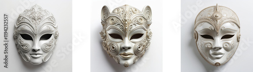 Naklejka premium Elegant, ornate Venetian-style masks, possibly from Hong Kong, shown in an...