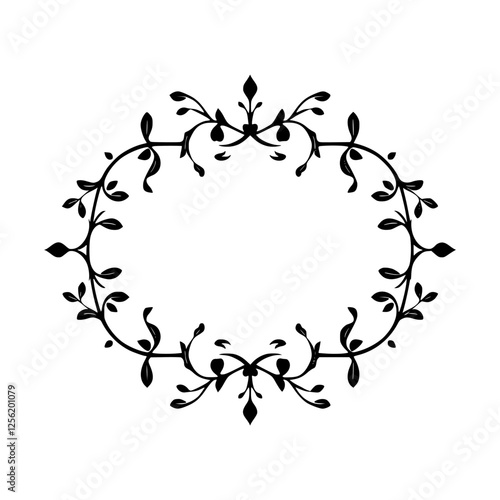 Naklejka premium Elegant oval floral frame in black and white, with symmetrical design,...
