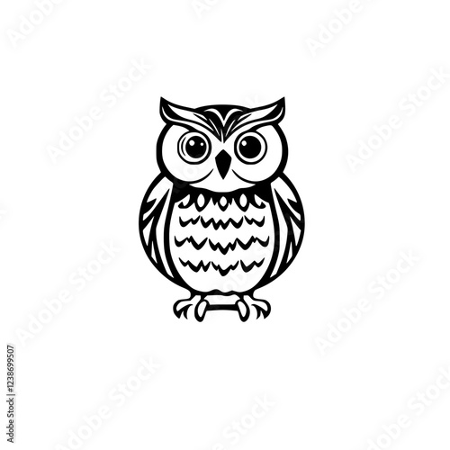 Fototapeta premium Elegant Owl: Black and White Bird Illustration, Wildlife Vector Graphic,...