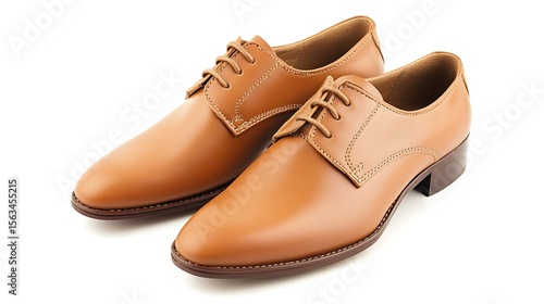 © Musa ▶️ Galib, Fototapeta premium Elegant Pair of Tan Leather Oxford Dress Shoes on a Clean White Backdrop